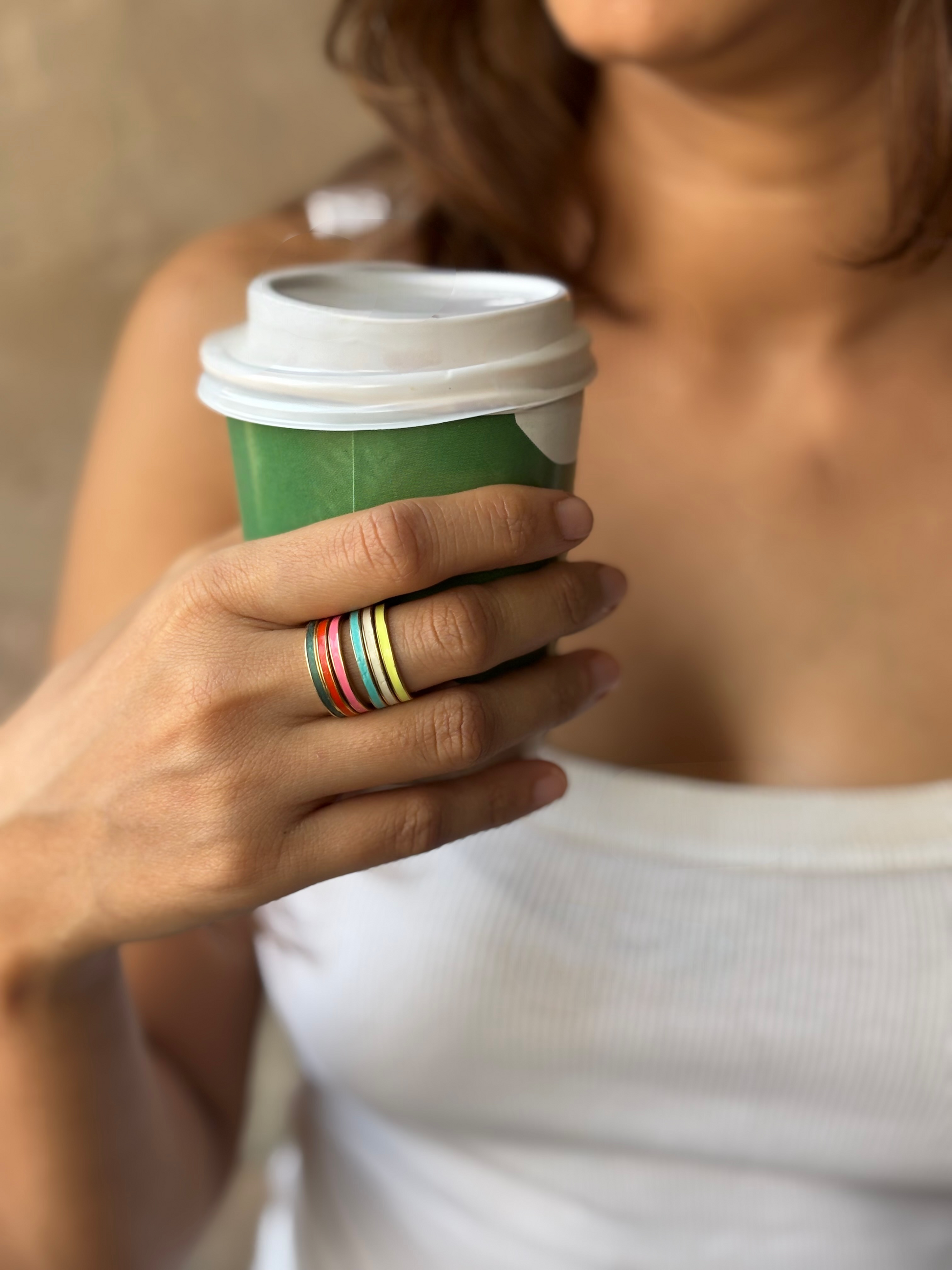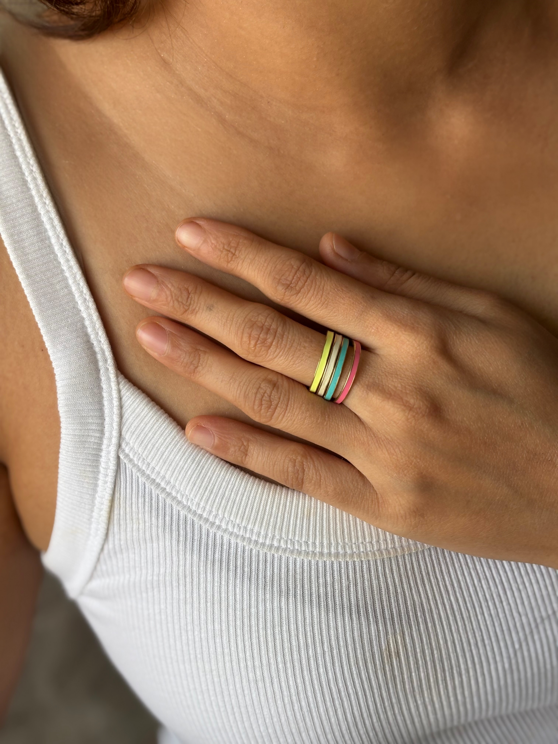 Featuring a smooth, polished band with a vibrant enamel inlay, this piece offers a clean, modern aesthetic. Available in a range of captivating colors and both gold-plated and silver-plated finishes, this ring is perfect for stacking or wearing alone.