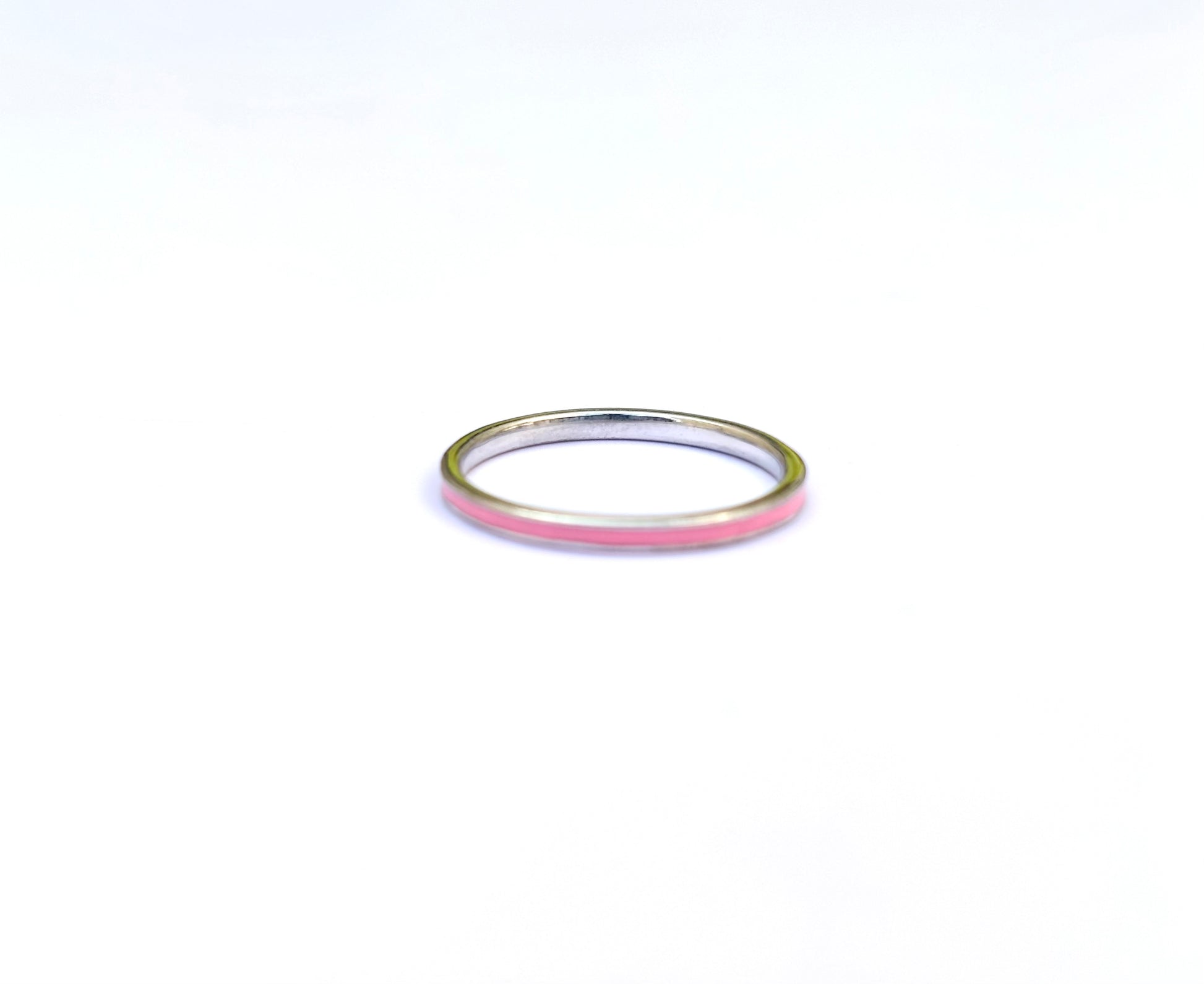 Featuring smooth, polished slim bands with a vibrant enamel inlay, these pieces offer a clean, modern aesthetic. Available in a sets of 5 and both gold-plated and silver-plated finishes, this ring is perfect for stacking